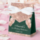 Esta caixa de lembrancinhas personalizável é o epítome do glamour com seu design em verde esmeralda e dourado rosa. Com glitter e balões dourado rosa falso, é a adição perfeita para qualquer celebração, desde aniversários até aniversários de casamento e convenções. A melhor parte? Há muito espaço para você adicionar seu próprio texto e torná-lo verdadeiramente único.