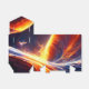Amarelo-claro fogo laranja escuro azul-água estrela design espacial.