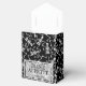 Esqueletos em um fundo preto e sua mensagem em letras elegantes na frente, você se divertirá com essas caixas de favores de festa estilo barraca com fechamento de fita para festas de Halloween, casamentos e mais. ITENS COINCIDENTES em nossa loja.