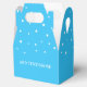 Padrão de estrelas brancas sobre fundo azul pastel. Caixas de favoritos personalizadas. Editar texto para personalizar. Excelente para decoração partidária personalizada.