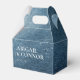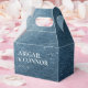 Elementos: fundo de aquarela, fontes serif e sans serif. Cores: azul, branco, prata, azul-marinho. Temas: espaço, estrelas, noite, uma noite sob as estrelas, escrito nas estrelas, celestial, moderno, contemporâneo, casamento noturno, casamento ao ar livre. Coleção: Conjunto de Casamento Estrelas do Céu Noturno Azul Marinho Branco. Tipo de Produto: Caixa de Favor - Gable