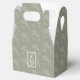 Com uma paleta colorida de marfim a musgo primavera verde e escuro, esta coleção de casamento apresenta uma letra escrita manuscrita e sotaques de folha de eucalipto para adicionar aquele maravilhoso toque moderno. A caixa coordenadora de favores mostrada aqui tem tudo acima com um padrão de folha impressionante em sábado claro, seguido pelas suas iniciais e data de casamento em um quadro de cor branca. Procure ID901 para ver outras opções de cores e peças de coordenação para esta coleção de casamento única.