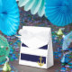 Design único e elegante com faixas náuticas azuis e uma âncora de ouro em ximersão.