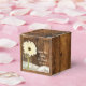 Personalize o encantador Faux Barn Wood Mason Jar e White Daisy Country Barn com os nomes pessoais da noiva e noiva e data da cerimônia de casamento. Estas caixas de favelas de madeira, de tipo "falso", de cãibra russa, apresentam uma fotografia floral quintal de grãos de madeira castanho e um vidro de mason repleto de flores margaridas brancas. Perfeito para uso no chá de panela casual do celeiro ou na recepção de casamentos do estilo fazenda informal.