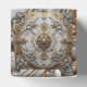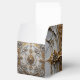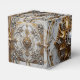 This elegant favor box is covered by an opulent silver and gold design.