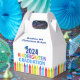 Esta caixa de favorecimento personalizada de 2024 jardins de infância apresenta um boné de formando legal acima do escrevendo colorido e uma fileira de lápis no arco-íris. Design de formando de jardim de infância bonitinho em cores divertidas pelo último dia do ensino fundamental. Parabéns para nossos formandos mais gentis!