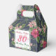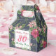 Design de padrão uniforme clássico e elegante feito de flores e folhas de Hibiscus vermelhas em fundo escuro com etiquetas quadradas e ovais para o seu texto em frente e etiqueta oval em trás com Obrigado. Caixa de favorecimento de festa de aniversário de 80 personalizável. Você pode facilmente alterar o texto (fonte, cor, tamanho e posição), alterar a transparência das marcas (copiar ou excluir uma delas) e alterar o tamanho e a posição da imagem de fundo clicando no botão personalizar ou personalizável. Chapas de papel de aniversário correspondentes e outros produtos.