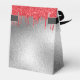 Elegante, clássico, glamouroso e feminino para um favorito de festa de aniversário 50ª (ou qualquer idade). Um fundo rústico de olhar prata. Com o texto: 50º Aniversário e Obrigado Escreveram com um moderno roteiro de estilo escrito à mão com uma cinza clara. Decorado com pingos brilhantes vermelhos vermelhos, aparência de pingar tinta. Personalize e adicione um nome e uma data.