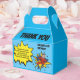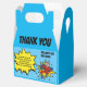 Envie uma caixa de agradecimento de super-herói especialmente especial para seus amigos, agradecendo a presença deles na sua festa e gratidão pelos presentes. Com a sua imagem como um super-herói usando uma foto do seu rosto! Com texto divertido que diz "OBRIGADO" e "eu adorei o bolo e os presentes também, mas minha parte favorita foi ver você! OBRIGADO POR VIR À MINHA FESTA E PELO PRESENTE MARAVILHOSO" e "NOME DELES". Os estilos de fonte e a cor do fundo podem ser alterados clicando no link personalizar ainda mais após a personalização.