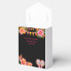 Celebre com estilo vibrante com esta Caixa de Favor de Chuveiro de Noiva Mexicano personalizada! Este design apresenta flores cor-de-rosa e laranja coloridas, flâmulas festivas e maracas charmosas com padrão floral, tudo isso sobre um fundo preto e branco elegante para um contraste ousado e sofisticado. Perfeito para um chuveiro de noiva estilo fiesta, cada caixa é finalizada com um laço de fita rosa, adicionando um toque doce e festivo. Uma maneira divertida e atenciosa de dizer obrigado aos seus convidados com um pouco de charme espanhol!