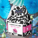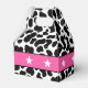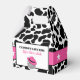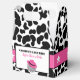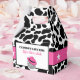 Celebre as noivas com essas caixas de lembrancinhas para festa de despedida de solteira com tema cowgirl disco. Elas apresentam uma divertida estampa de vaca preta e branca com uma ilustração de uma bola de discoteca usando um chapéu de cowboy rosa. O texto está pronto para ser personalizado com sua própria mensagem.