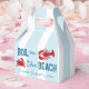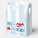 Ferva na praia! Fim de semana de despedida de solteira com ensopado de frutos do mar com caranguejo e lagosta contra um fundo listrado azul costeiro