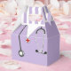 Criativo médico-temático favorece caixas com esfregões hospitalares e estetoscópio para formatura em enfermagem ou festa de enfermeira criativa. Adicionar texto para personalizar.