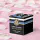 Este design apresenta uma bandeira da polícia com listras pretas e brancas, e uma fina faixa azul de linha também. Um excelente de dizer parabéns para o formando da nova academia de polícia e dizer obrigado para os convidados do seu partido. Personalize com o nome do polícia graduado em ouro. Celebre este marco em estilo!