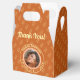 Eleve a celebração da sua formatura com caixas de lembranças fotográficas elegantes em tons alaranjados quentes, pêssego suave e creme. O design apresenta a foto do formando em uma moldura arqueada sofisticada com o nome, escola e ano de formatura, rodeada por um padrão repetitivo de gorros de formatura. Detalhes atenciosos criam uma experiência de convidado elevada e uma lembrança memorável.