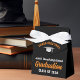 Esta caixa de favorecimento de festa de formatura personalizada, laranja e preto, moderna apresenta seu nome de segundo grau ou de faculdade para a classe de 2025. Personalize com seu ano de graduação com o script de chic manuscrito e o boné de formando branco para um presente personalizado de manutenção do formando de excelente.