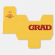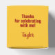 FORMANDO em letras maiúsculas e vermelhas em negrito envolve a frente destas caixas de favoritos de festa de formatura quadrada de ouro amarelo de 2" com seu nome e obrigado que você envia no topo. Preencham-se de guloseimas como obrigado para os convidados da sua festa de formatura. CORRESPONDENTE a itens e mais cores na nossa coleção.