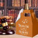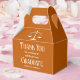 Esta caixa de festas de formatura da escola de direito personalizado moderno apresenta o nome do formando da faculdade em um roteiro branco elegante no fundo laranja da classe de 2024. Personalize com sua universidade sob as escalas de justiça com um obrigado de graduação que você envia para um novo advogado.