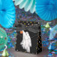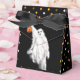 O partido Creative Halloween favorece ou trata caixas com fantasmas engraçados segurando uma abóbora de truque ou tratador em um fundo de poka-ponto.