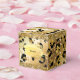 Uma bela ilustração de colagem de abstrato em ouro falso e preto com manchas-leopardo sobre um fundo de ouro falso vibrante que tem pontos brilhantes sobre ele e ao longo das bordas superior e inferior. Essas caixas de bonés modernas e luxuosas podem ser personalizadas para qualquer safari africano ou animais selvagens da festa temática africana que você possa estar hospedando. Personalize os modelos para atender às suas necessidades.