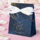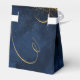 Um fundo de aquarela em tons de azul real a marinho é tocado por um abstrato de linhas de ouro finas e efeitos luminosos brilhantes para criar as peças desta bela suíte de casamento. A caixa de favoritos do casamento 'Obrigado' mostrada aqui também mostra a caligrafia 'Obrigado' junto com os nomes da noiva e do noivo e a data do casamento. Procure ID867 para ver outras peças e opções de cores para este conjunto.