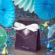 Um fundo de aquarela em tons de roxo de ameixa é tocado por um abstrato de linhas de ouro finas e efeitos de iluminação reluzentes para criar as peças desta bela suíte de casamento. A caixa de favoritos do casamento 'Obrigado' mostrada aqui também apresenta um quadro gradiente em forma de diamante para segurar as iniciais da noiva e do noivo e a data do casamento. Adicione uma mensagem de obrigado pessoal usando o modelo fornecido. Procure ID867 para ver outras peças e opções de cores para este conjunto.
