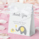 Use nossas caixas de chá de fraldas com tema de elefante amarelo e cinza com fita para empacotar os favores do seu chá de uma maneira fofa e fácil.
