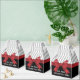 O design deste produto apresenta uma fita vermelha ilustrada em um fundo preto e listras cinzas. Com seus gráficos clássicos únicos, cria caixas de lembranças elegantes e sofisticadas com texto personalizado e a cor de listra favorita para aniversários, casamentos, festas de Natal ou qualquer outro evento especial.