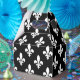 Padrão elegante, na moda e sofisticado com Fleur De Lis branco sobre fundo preto. Design moderno e moderno, perfeito para o amante da carga heráldica.