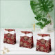 Bonito imagens de flocos de neve cintilantes de ouro, de diferentes tamanhos, estão contra um rico fundo de férias vermelho de burlu escuro nesta elegante bolsa de presentes. Um banner revestido a ouro mantém o texto personalizado em marrom correspondente no verso. Faça-o dizer o que quiser! Esta bolsa é elegante o suficiente para casamentos, presentes de férias ou qualquer evento de inverno. *Observe que a imagem está impressa e não contém nenhum brilho ou substância metálica real.*