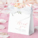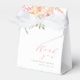 A baby shower favor box to match our Baby In Bloom Blush & Teal Spring Baby Shower collection. This favor box features a floral arrangement in the top left-hand corner. There are roses, dahlias, snapdragons, eucalyptus, and more. Below, aligned to the right, it reads "thank you" in flowing script. The mom-to-be's name and the date appear underneath that in classic serif typography. Perfect for filling with candies, small gifts, or treats for your guests. View the collection linked on this page for the full baby shower bundle. Visit our store for more baby shower designs.