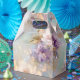 Caixinha De Lembrancinhas Flores brancas roxas Douradas femininas
