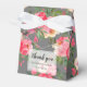 Elegantes peônias cor-de-rosa em aquarela e folhagens em um fundo cinza carvão (ou qualquer cor que você escolher), essas caixas de festa com fechamento de fita estilo tenda são lindas para casamento de primavera ou verão, chá de noiva ou qualquer ocasião.