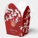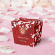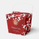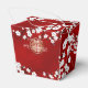 Esta caixa de lembrança de casamento chinês apresenta belos ramos de flores orientais brancas, borboletas fofas e um símbolo de dupla felicidade dourado em um fundo vermelho brilhante. Linda caixa vermelha, branca e dourada com os nomes dos noivos na frente e no verso. Então, esta caixa foi projetada para dar ao casal.