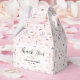 Delicadas flores silvestres num fundo cor-de-rosa, estas bonitas caixas de favor são perfeitas para um chá de fraldas feminino. Disponível em azul e marfim. CORRESPONDENTE a itens na nossa coleção.
