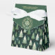 Saco de produtos sazonais sofisticado para apiários embalarem pequenos itens como batom verde-invertido e gotas de mel embrulhadas ou mini canetas doces. Floresta de inverno com flocos de neve em um fundo verde de floresta. Adicione o nome da sua empresa e o nome do produto, ou a sua mensagem de feriado e o nome da família.