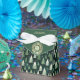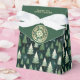 Saco de produtos sazonais sofisticado para padeiros ou padarias para embalar pequenos itens como chocolates artísticos e minicanas doces. Floresta de inverno com flocos de neve em um fundo verde de floresta. Adicione o nome da sua empresa e o nome do produto, ou a sua mensagem de feriado e o nome da família.