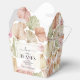 Folhas pastéis e rosas em tons de bege, rosa e verde sage acentuam essas caixas de lembrancinhas em estilo delivery, perfeitas para chá de panela, casamentos, chá de bebê, aniversários ou qualquer ocasião. ITENS COINCIDENTES em nossa loja.