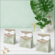 Folhas verdes pálidas com sotaques dourados sobre um fundo verde de sábio pálido em volta dessas caixas de presentes de estilo tenda com um fechamento de fita - perfeito para embalar seus favores de casamento, favoritos para festas, presentes de negócios, presentes corporativos e muito mais. Personalizado com seus próprios detalhes ou saudações. Mais caixas, papel tecidular e itens CORRESPONDENTES em nossa loja.