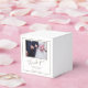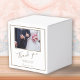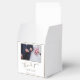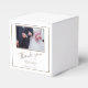 Uma caixa de favoritos de casamento moderna e na moda com sua foto de casamento, noiva e vassoura e a data do casamento. Uma elegante caixa de presentes de favores. Perfeito como caixa de favoritos de casamento para um casamento elegante.