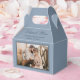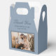 Caixas de favoritos de fotos azuis e poeirentas. Personalize facilmente estas caixas de favoritos do casamento com os seus detalhes do casamento. Nossas caixas personalizadas são perfeitas para sua festa de casamento azul empoeirada. Esse obrigado personalizado que você favorece as caixas pode ser personalizado para outras ocasiões, como chás de panela.