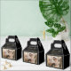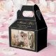 Caixas de favoritos de fotos de casamento preto e dourado. Personalize facilmente estas caixas de favoritos do casamento com os seus detalhes do casamento. Nossas caixas personalizadas são perfeitas para sua festa de casamento clássica de preto e ouro. Esse obrigado personalizado que você favorece as caixas pode ser personalizado para outras ocasiões, como chás de panela.