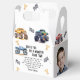 Atenção a todos os pequenos animais de festa! Preparem-se para aumentar a diversão com nosso 'BOOM, CLASH É UMA BATALHA DE CAMINHÕES MONSTROS' agradecimento de festa de aniversário para crianças em caixa de favor. Adornado com adoráveis e vibrantes caminhões monstro, uma foto, este agradecimento de script de tipografia moderna por se juntar à celebração.