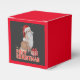 Raposa bonita com chapéu de Papai Noel, presente e texto vintage "Foxy Christmas"