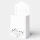 Expresse a sua gratidão aos seus convidados com a "Future Mrs Modern Handwriting Script Favor Box". Esta design elegante e minimalista com um guião moderno de escrita manual corresponde perfeitamente à decoração do chá de panela. Estas caixas de favor adicionam um toque de sofisticação ao seu evento e são uma bela maneira de mostrar seu amor e apreço aos seus convidados. Personalize-os facilmente adicionando o nome e as informações do evento, criando um toque exclusivo e personalizado para o seu chá de panela.