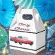 Caixa de favorecimento em estilo gable com uma imagem, na frente e atrás, de um Cadillac rosa clássico e as palavras "Chassi clássico" (gíria 50) em letras rosa e bolinhas pretas no estilo 50. Bordas negras. Veja confetti correspondente, bolsa de favor, etiqueta de favor, sacos de presentes. etiqueta, adesivo quadrado, vinil personalizado e papel de embrulho. Veja toda a coleção Nifty 50 Box em TOUCHES ESPECIAIS | Seção Favoritos para festas.