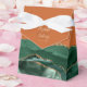 Esta elegante caixa de favores moderna apresenta uma esmeralda cor d'água verde agate design aparada com brilho dourado. Personalize-o com os nomes da noiva e do noivo em um guião de manuscrito dourado sobre um grande e sobre um fundo laranja ou ferrugem queimado, juntamente com a data do casamento abaixo.