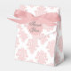 Um padrão fino e feminino, cor-de-rosa, sobre um fundo branco, faz uma bela caixa de favoritos. Mostrado aqui com a mensagem "Obrigado", você pode ordenar este item como está ou alterar o texto para seu gosto editando o texto mostrado no modelo de design. Esta caixa de favor é uma boa escolha para chuveiros, festas de aniversário, casamentos e muito mais.