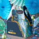 Caixinha De Lembrancinhas Glitor de Grelha Azul e Dourada Agradecemos