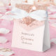 Elegante, clássico, glamouroso e feminino para uma Quinceañera, favores de festa de aniversário 15. Rosa dourado, fundo de gradiente de pincelada, decorado com pingos de falso brilho e balões. Com o texto: Quinceañera e Obrigado, escreveram com um moderno estilo escrito à mão. Personalize e adicione um nome e uma data.